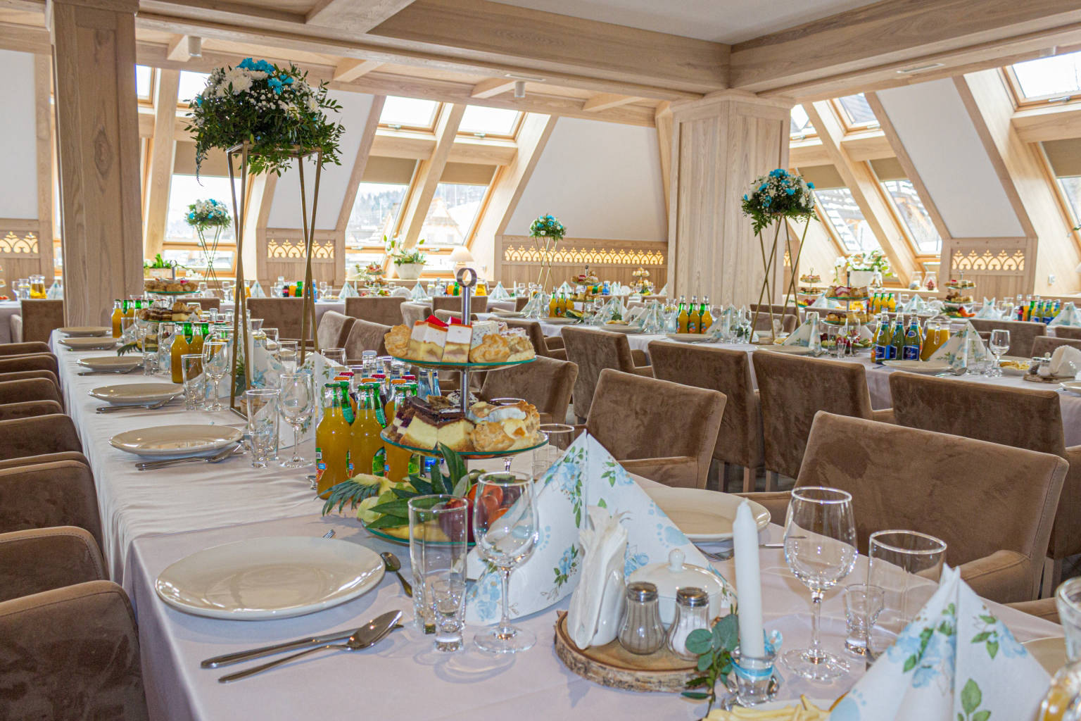 Aparthotel Askana przy Stacji Narciarskiej Kotelnica w Białce Tatrzańskiej organizuje przyjęcia weselne, chrzciny, komunie oraz szereg innych imprez od 20 do ok. 250 osób. Oferujemy wachlarz usług w zakresie przygotowania menu, wystroju sali czy organizacji oprawy muzycznej dla wybranej przez Ciebie imprezy. Piękne widoki na pasmo Tatr, wnętrza zaprojektowane z dbałością o najdrobniejsze detale z szacunkiem dla tradycji oraz kultury regionu, doskonała